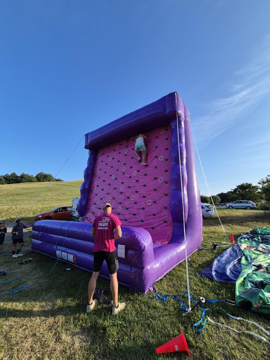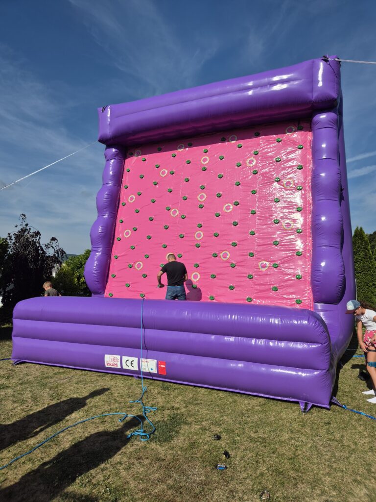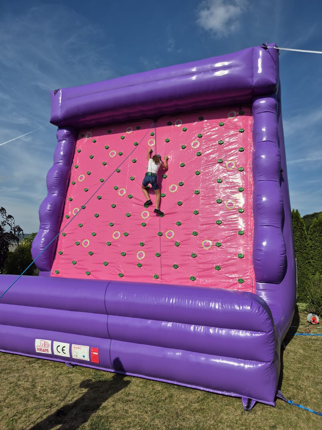Nafukovacia lezecká stena vysoká až 6 metrov. Zábava pre deti rôzneho veku. K atrakcii je zabezpečená obsluha vyškoleným personálom, ktorý dieťa bezpečne istí počas celej akcie.